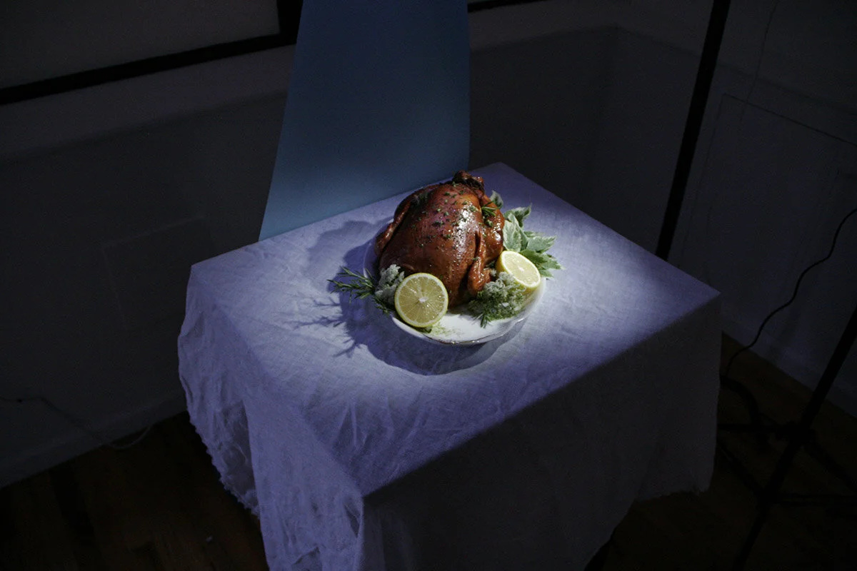 This event occurred during Kristen Van Deventerβs exhibition, En suite, at Regards,. All visible paintings are part of that exhibition.